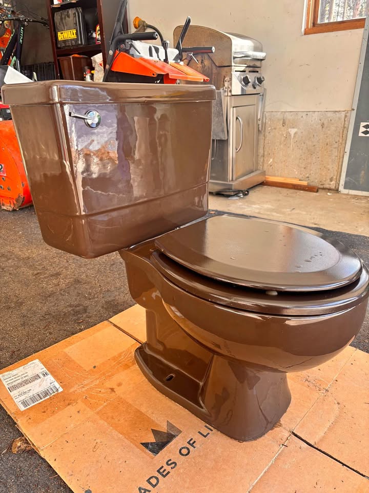 I detect a cushioned seat in a matching hue – it could be particularly beneficial while one is sitting and pondering “What’s next?” Further observational analysis tells me this model is most commodious. Also noted is the commonly encountered right-hand-positioned cut lever – doubtful that it’s convertible into a left-handed model. And with that, there you have it – perhaps a matching sink and bathtub can be sourced, and hey, maybe a refrigerator and stove to boot. With all of that, one will be able to relive the seventies with a full house, right?