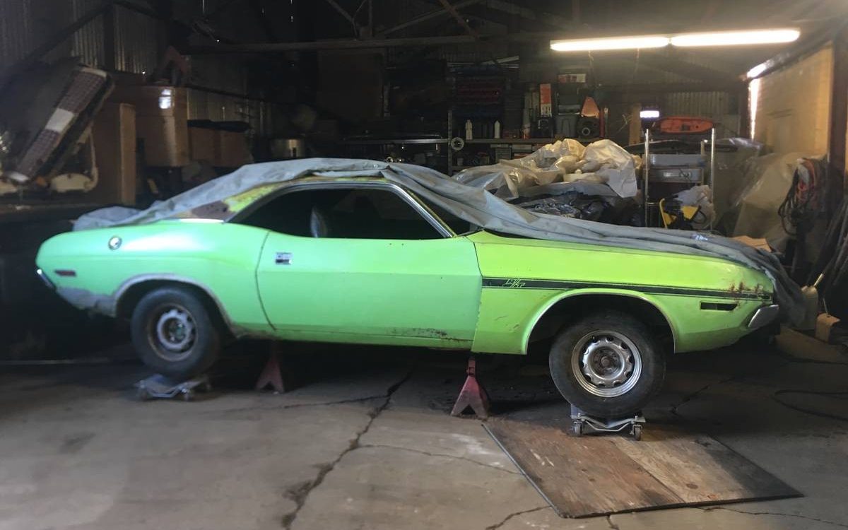 The engine and transmission are missing, but the seller includes a factory 1970 383 V-8 with the sale, although they mention it will need a rebuild. They include a box of a bunch of bits that go with the car in addition to the engine, but it sounds like you’ll need to source your own transmission. If you’d like to go stock, that would be the four-speed manual optioned from the factory. The standard transmission for the 1970 Challenger was a three-speed manual, with either a four-speed manual or a TorqueFlite automatic optional. This one had the extra gear.
