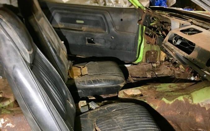 The seller states that this is one of four hundred made, and I’m skeptical of that. I found this that seems to say that there were over three thousand SE-optioned Challengers made. Maybe the seller is right and that only four hundred were optioned in that specific paint code and powertrain configuration? Either way, it’s a rare car. Exactly how rare is up for some debate, but it is rare. It looks like a genuine SE, too, based on the size of the rear window. It needs some work, and that is best noticed in the interior. Much of what made the SE the SE is the interior trim, and that’s all gone. The good part is that you have a decent base to build off of; there is a dashboard, and the seats are present. Both will need to be at least reupholstered, but they are there.