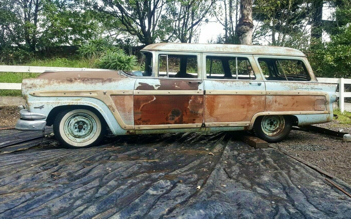 I’d restore this Squire. You can always put on a 4bbl. to the 312 for more oomph. So few `56 models got factory AC; I’d be highly surprised if this had it. Upholstery kits are available, but some critical glass is missing, which might be tough to locate if it isn’t delaminated already. This would be gorgeous in its original Spring Green. Not positive, but I think someone is replicating the shelf-paper for the sides. Please don’t street rod or resto-mod this; these aren’t falling out of trees exactly anymore.