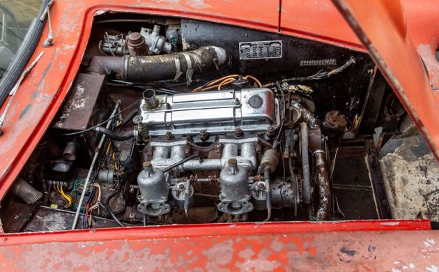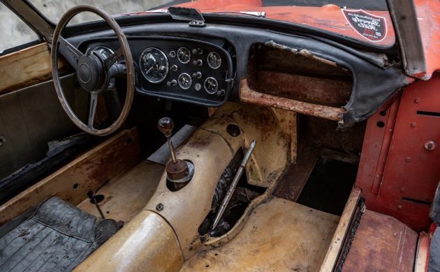 Although the Peerless GT had a unique body, the car borrowed its running gear from a Triumph TR3, including the 4-cylinder powerplant and dual carburetors. Details regarding the engine here are sparse, with the seller only revealing that it’s not currently running. There are no other specifics provided, such as how long it has been since the motor was last operational, or whether it will still turn over. The good news is that most of the components under the hood appear to still be present and in fairly good order, so hopefully, the buyer will be able to get this one functioning again without a complete overhaul, at least not right away.