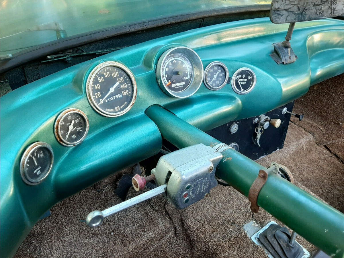 The La Dawri sits on a stock Henry J chassis, with a modified ‘49 Oldsmobile Rocket V-8 and a Ford rear end from the ’49-’51 time period. The engine boasts Fenton headers, Gotha rocker arms, Jahns pistons, and a dual point distributor—all presumably period. It would be worth getting that motor going again for the vintage cred. A LaSalle three-speed manual is floor-shifted and connected to a shortened Olds driveshaft.