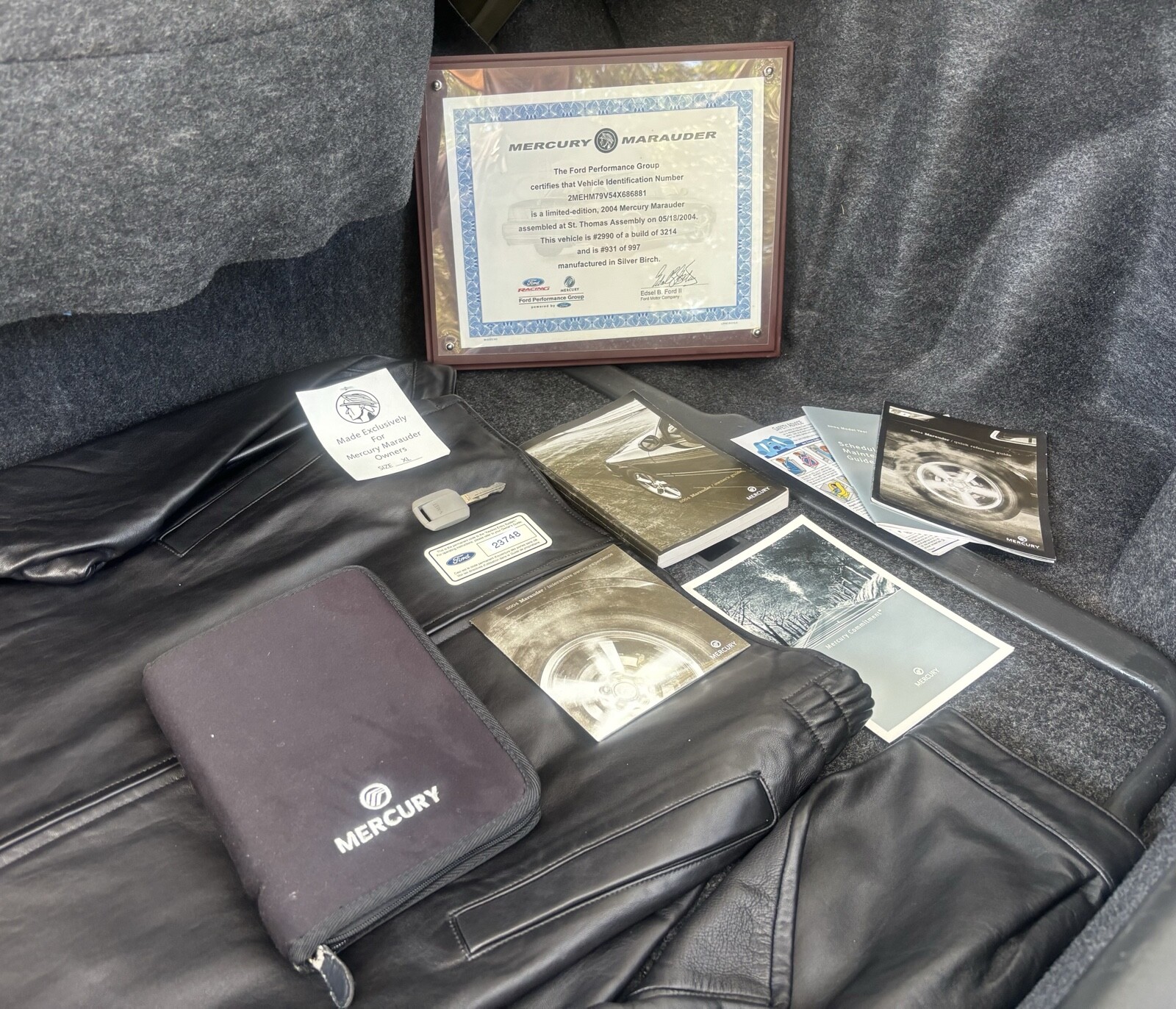 The Marauder’s luxury and safety credentials are clearly visible when we focus on its interior. The new owner receives airbags, traction control, climate-control air conditioning, leather trim, cruise control, a tilt wheel, white-faced gauges, a premium stereo with a CD player, and power operation for the windows, locks, front seats, and mirrors. Faulting the condition is seemingly impossible. There is no wear or evidence of neglect. The back seat appears to have only received limited use, and there is no scratched or scored plastic. One interesting touch is the genuine Mercury Marauder leather jacket. These were reserved exclusively for Marauder buyers, and the one included in this sale has never been worn.