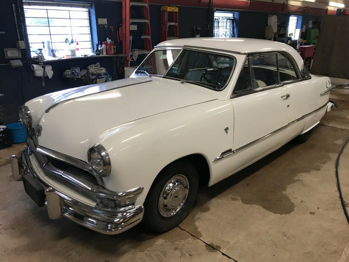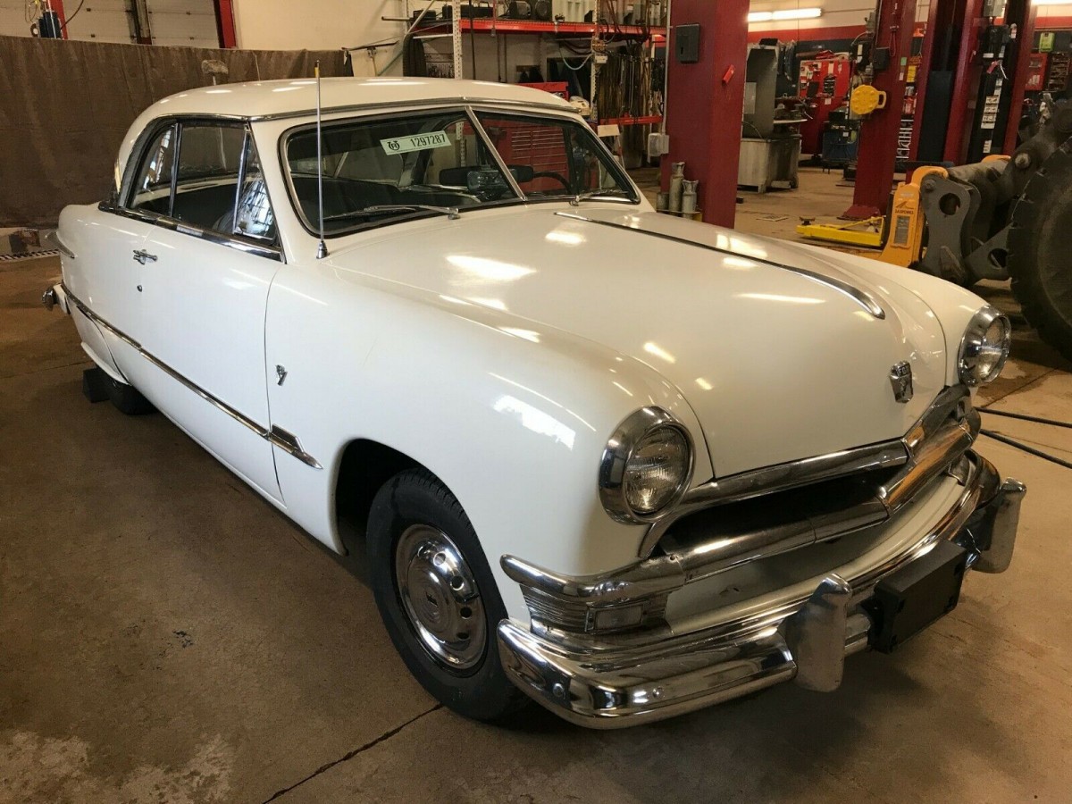 Following the end of World War II, American buyers were clamoring for new cars. The economy was booming, and people had money to burn. Passenger car production and development had ceased during the war, which meant that manufacturers were forced to enter this new era of prosperity with slightly modified versions of their pre-war offerings. Ford stole a march on the opposition in 1949 by releasing the first completely new model. Affectionately dubbed the Shoebox, this new model sold in incredible numbers. For the 1951 model year, Ford then introduced the Victoria to their range. Taken purely at face value, this ’51 Victoria seems to have a lot to offer potential buyers. Its white paint looks nice, with no signs of any horrible problems. The panels are straight, and there is no evidence of any external rust. Someone has fitted the car with a Continental kit, which gives the vehicle a distinctive appearance. The trim and chrome appear to be in excellent order, while the same is true of the glass.