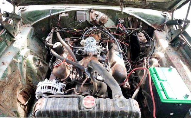 Dodge’s use of “440” and “500” to denote trim levels, compounded with their use of a 440 cid V8 engine, confuses many fledgling motorheads. Decades ago I drooled over a friend’s grandmother’s 1966 Dodge Coronet 440 thinking it had the monster V8, then later I learned it had the basic 318 cid Polysphere V8. Similarly, this 1970 Dodge Charger 500 in Oceanside, California sports a 318 cid V8, the later “LA” version, but of particular interest is its V1F code “Gator grain Green Vinyl Roof.” Bidding here on eBay has surpassed $11,000. Thanks to Patrick S for spotting this original never-restored B Body.