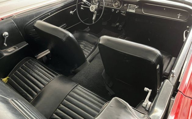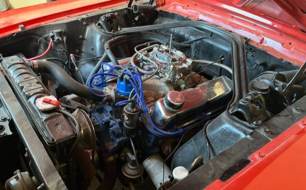 No issues seem present with the body and paint (wish we had more photos), and we’re told the black interior is about 80% original. The C-code 289 cubic inch V8 has been rebuilt and upgraded to a 4-barrel carburetor. The 60,000-mile Ford comes with a 4-speed manual gearbox. The seller says the T-5 dash plaque is there, but provides no image of it, which would help clear things up. T-5 drop-tops are much harder to come by than coupes in the U.S. after 60 years.