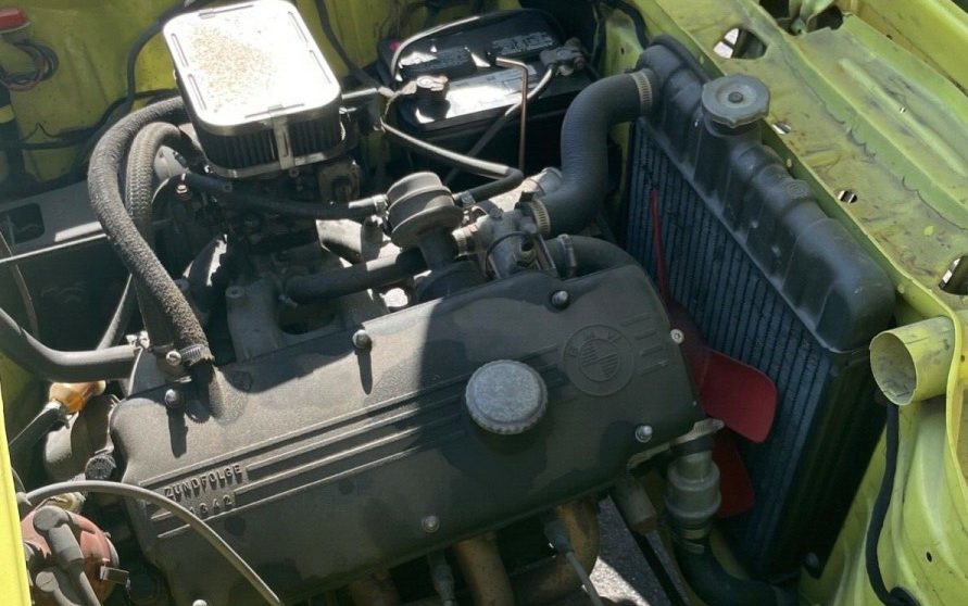 BMW 2002s were known for wearing silver, lots and lots of silver is how one found so many 2002s in the ’70s. But black, white, dark green, and red made the rounds too. Golf Yellow, however, is not a hue that I have regularly encountered, at least not on early ’70s versions. It wears it OK, but I’m being subjective as I’m not a yellow fan. All-in-all, it looks pretty good and the seller adds, “No rocker rust no strut tower rust no floor pan rust. Little tidbits of surface rust here and there“. Good to know as these can be rust magnets but a California upbringing has probably negated the corrosion factor. The fact that this is a round-taillight model helps with its allure.