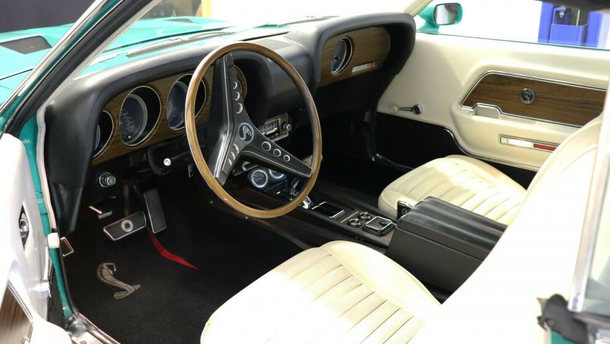 The wording in the listing is a bit odd, but I interpret it as saying that the majority of the interior trim in the GT500 is original. I believe that the carpet might have been replaced, but the rest of it is as it left the factory. If you look closely, it does appear as though the white upholstery is showing some spots of “yellowing,” which is not uncommon. Otherwise, it doesn’t appear as though there are any rips, tears, or stains to be seen anywhere. Optional equipment fitted to the GT500 includes tinted glass, an AM radio, Sport Deck rear seat, and a tachometer and trip odometer. One other interesting little statistic that surrounds this car is that while it is 1-of-416 cars finished in Grabber Green, it is also 1-of-104 finished in the paint and interior trim combination that we see here.