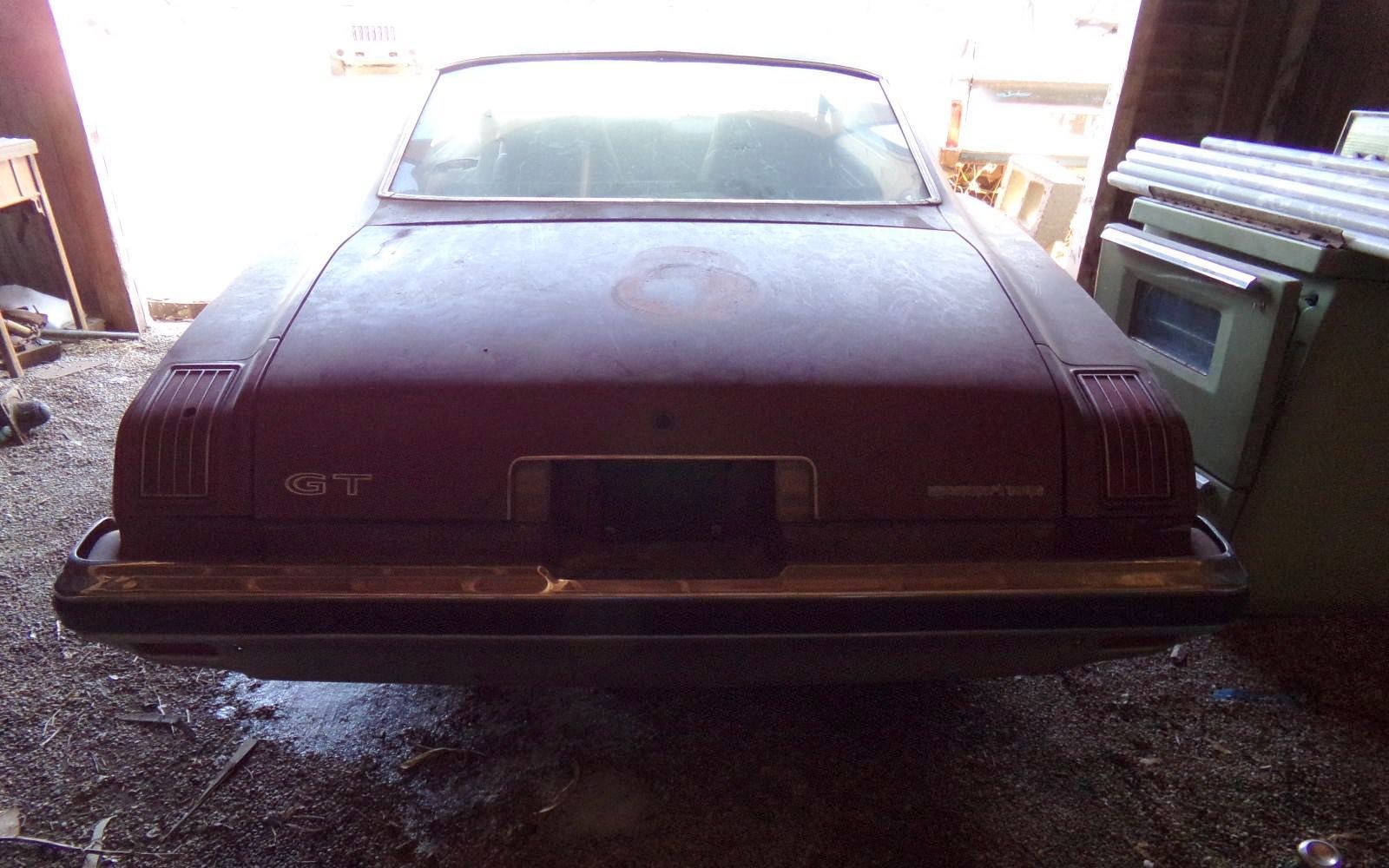 There’s a GT badge on the back. There’s also a hood from a GTO out front, so that doesn’t mean a whole lot. Badging is never a guarantee so lets take a closer look and figure out if this is the real deal. There should be a pair of exhaust tips peeking out from under that bumper, but unfortunately this photo is the wrong angle and a little too dark to get a good glance of the underbelly.