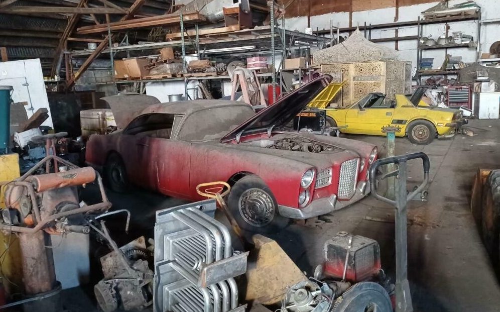 Here is the epitome of the barn find, a very rare and valuable car that’s been in long-term storage. It’s a 1956 Facel Vega FV2B, a super-desirable French coach-built coupe with Chrysler 5.4-liter Hemi V-8 power. It’s here on eBay in Sacramento, California with a $125,000 Buy It Now. There’s very little information and only one photo—though a very evocative one. The car is depicted in a large, cluttered warehouse with all kinds of debris—and a yellow Fiat X 1/9 in similar condition—around it. The Facel, seen from afar, looks in reasonable condition under a layer of dust. The hood is up and the engine is in the engine bay. I think I see an interior, and the tires are inflated. We’re told this, “Recently discovered after long-term storage. Starts and runs! This is a super-rare French-made Facel Vega FV2B in need of a restore for sure.” When it’s done, it will look like the lovely car shown below.
