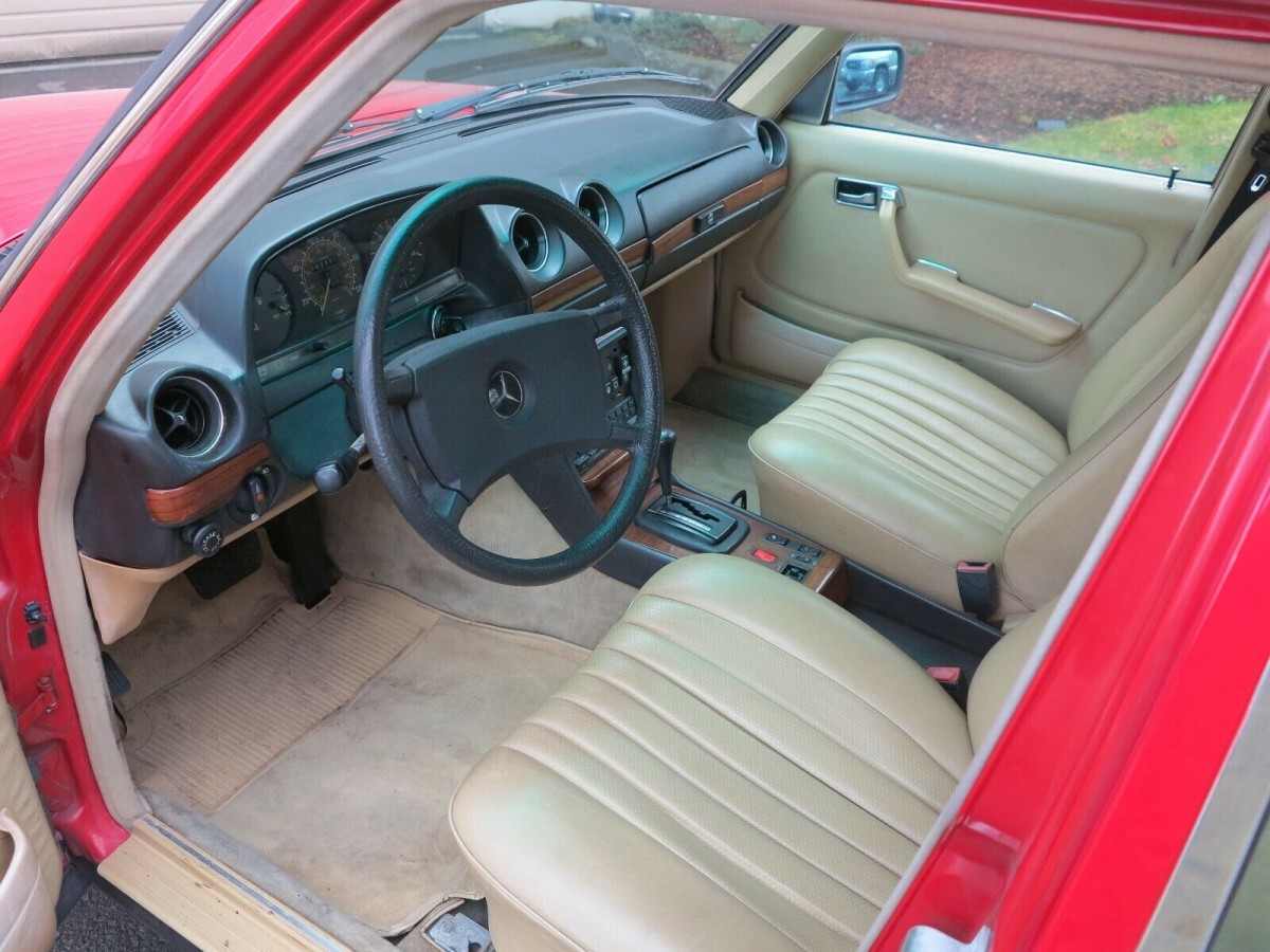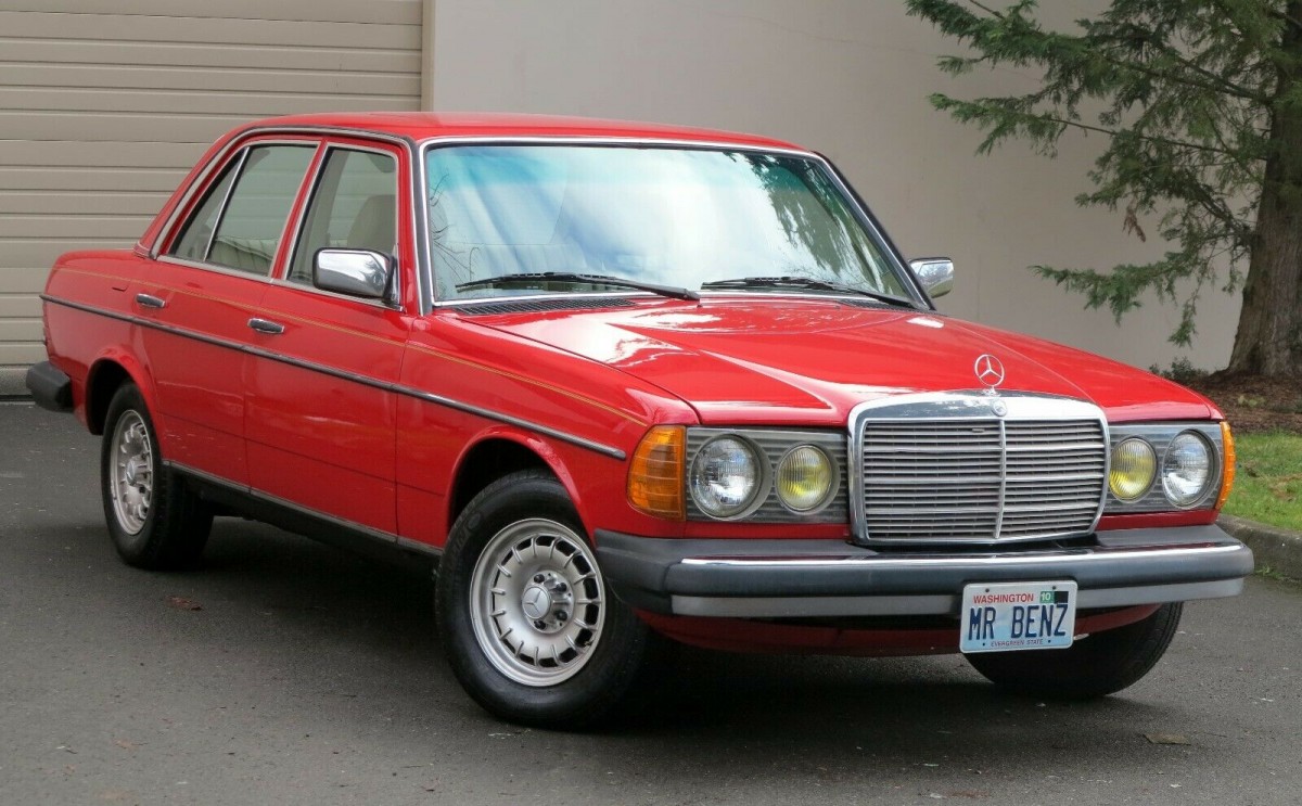My mom purchased a used 1981 300D in beige. My dad bought a 1985 dark silver turbocharged 300D. Except for batteries in the cold Ohio climate, both cars lasted them the rest of their lives. So I know they are sturdy and dependable if properly maintained and did not rust through like American cars of that era. I particularly liked the red paint on this example for sale.