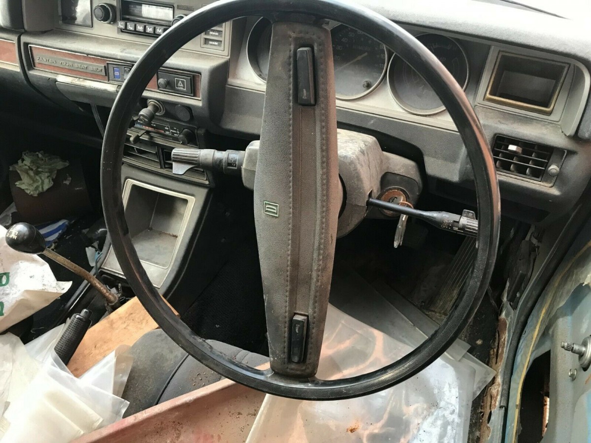The interior of a 180B is typical of many cars from this era in that it is a sea of plastic. You will never mistake it for a Rolls, but it does feature some faux woodgrain inserts in the dash. These are surprisingly comfortable cars for the price, with seats that offer decent support. Aimed mainly at growing families, a 180B can seat two adults and three children in relative comfort. It is hard to gauge the condition of this interior, but what we can see of the plastic looks encouraging. This isn’t that surprising because the plastic trim in Japanese-developed cars of this era tends to survive better in the UK climate than in many other countries. The driver’s door trim is not attached, but it may be there somewhere. Interior features include an effective heater, an AM/FM radio, two-speed wipers, and a ventilation system that can provide an excellent flow of fresh air on warmer days.