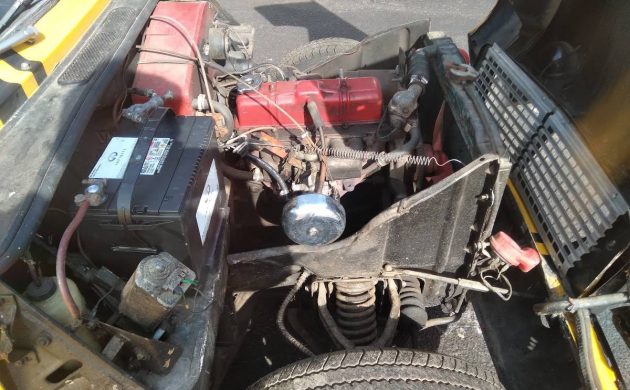 The 1147 cc engine managed 39 hp breathing through a single Solex carburetor. Gears shift via a four-speed manual; there was no overdrive option. Rack and pinion steering, an independent front suspension with swing axles in the rear, and optional disc brakes for the front round out the mechanical profile. Top speed was about 70 mph. The car has a very short turning radius, and while handy in the curves, you’ll want to watch those swing axles at speed around the corners! The seller notes that his car does run and drive.