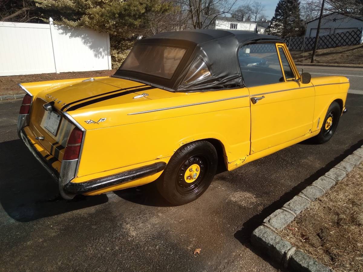 Largely a 4-seat version of the Spitfire. As I recall, the “Spit” had a solid rear axle which, if grafted in, would likely give more predictable handling than the swing axles. Also, in the past, Triumph supported the Spitfire with an entire catalogue of speed parts and modifications to the engines to provide substantially more power from the asthmatic engines.