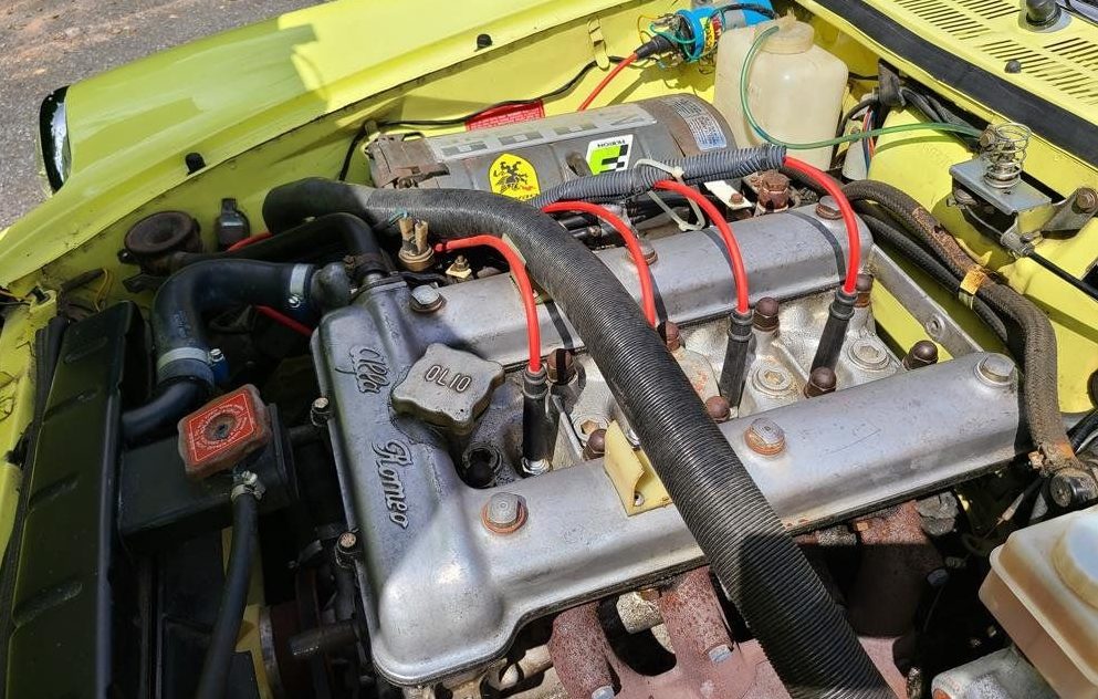 Inside, the seats appear to be in excellent shape, and the same goes for the carpeting and door panels. The iconic wood-rimmed steering wheel is also an original equipment piece that we like to see, but the Alfa logo on the horn pad is heavily faded. Replacing that relatively inexpensive part will liven up the cockpit significantly. The seller notes it has an aftermarket stereo, but doesn’t explain whether anything else has been previously replaced. Overall, the Alfa presents like a 20,000 mile example and aside from swapping back in an old-school radio, there’s not much I’d change here.