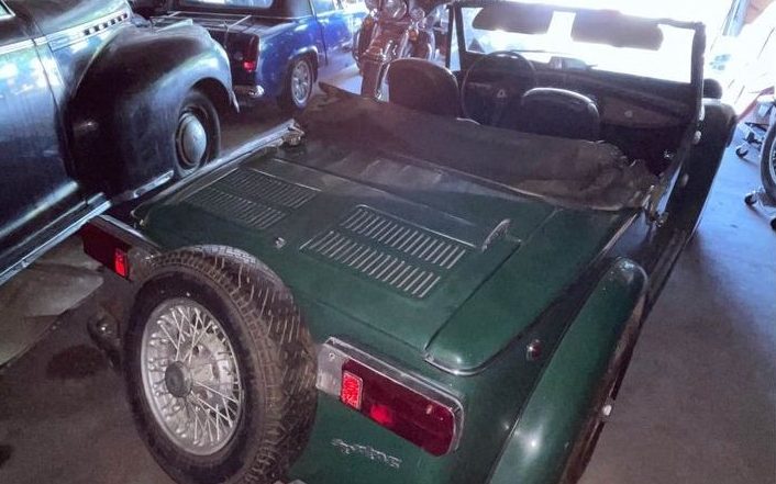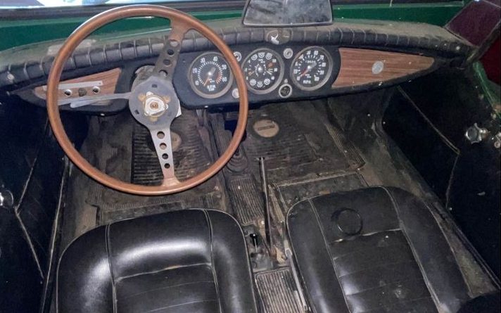 The interior is typical for sports cars from the late ’60s/early ’70s era, it is spartan and to the point. Other than the missing steering wheel center, it looks to be in very reasonable condition. The black vinyl upholstery is free of splits as is the dash pad. The instrument panel gauges are nice and legible too. Beyond a thorough cleaning, the interior could remain as is and be enjoyed.