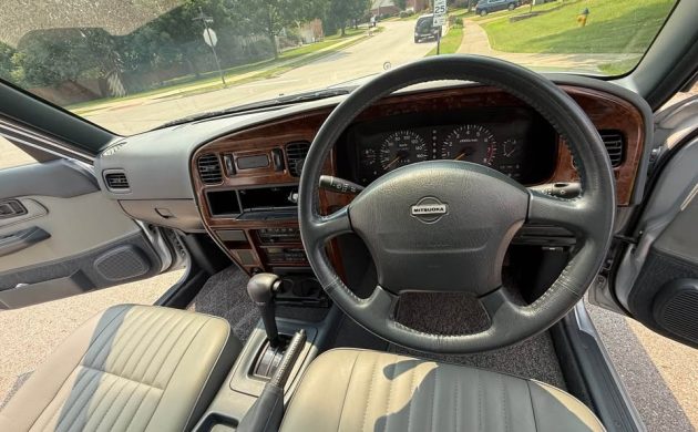 Although recognized in its home country as a vehicle manufacturer, Mitsuoka is essentially a coachbuilder that has operated since 1968. It released the Galue in 1996, basing it on the underpinnings of the Nissan Crew mid-size sedan. After removing many of the Nissan panels, the company transformed the Crew into the retro-style Galue, utilizing styling cues from various manufacturers. The front and grille are Bentley-inspired, while the taillights were sourced from a Japanese-spec Cadillac Fleetwood. The wire wheels found on this car were a factory option that further reinforced the car’s luxury leanings. The overall presentation is pretty good, with no major cosmetic shortcomings. The Silver paint hasn’t deteriorated with age, the panels are straight, and there is no evidence of rust. With sparkling chrome and clear glass, this Galue makes a positive first impression.