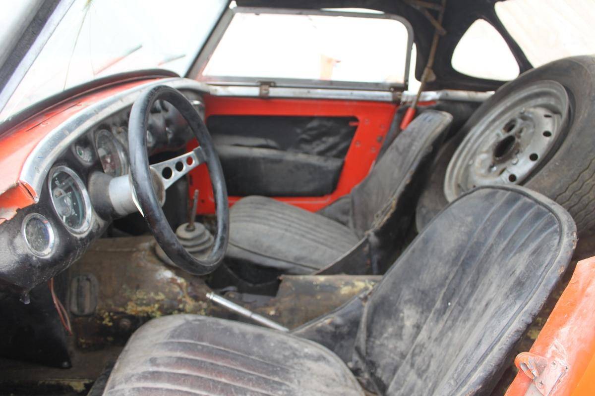 The Sprite featured here looks like a fairly tidy car, although it has been repainted from its very pretty original shade of primrose yellow to the current orange color. The body looks sound but I’d want to expose that original color if it were mine, while keeping the unique Kellison bonnet and OEM steel wheels. The seller notes that rust is minimal, which is surprising to find on a British roadster of this vintage that has been barn stored.