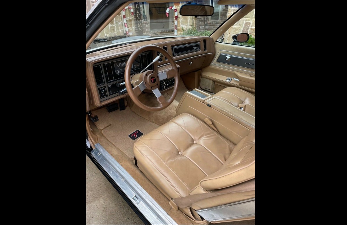 Here’s the mint condition tan leather interior that makes this one a little rarer than a “normal” Grand National. The seller has slightly improved the car overall (more on that later) but thankfully has left the interior alone.