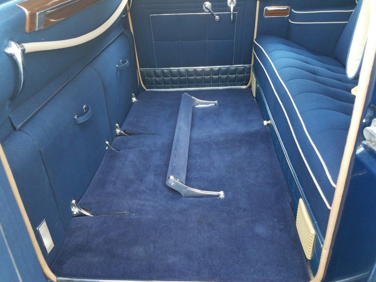 *The interior of the Custom Eight and the Super Deluxe was equal to the finest interior of coachbuilt pre-war cars like Duesenberg, Rolls-Royce and Pierce-Arrow. The seats & door panels were upholstered in the finest English wool broadcloth, the bottom trim on the doors and seat bases was real leather, and the carpeting was the finest carpeting I’ve ever rested my bare feet in/on, it was called “Mosstread”. My toes would literally sink into the pile, and it was backed by a new product; dense-foam rubber. As far as I know, no one has ever reproduced that material, as it would be too expensive to undertake.
