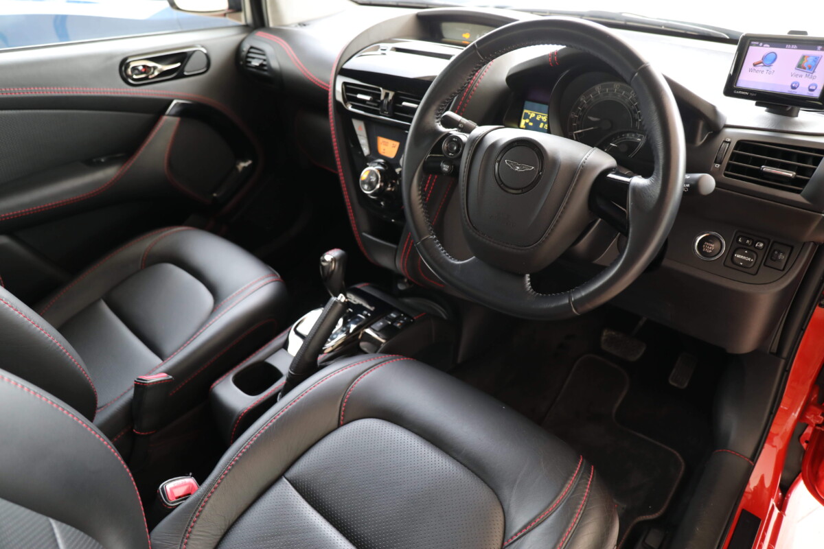 Badge engineering is nothing new, with the practice allowing manufacturers to release what is perceived as a new model without spending hundreds of millions of dollars on engineering and development. Aston Martin’s product range has long revolved around cars with a V8 or V12 under the hood. Faced with the looming tighter emission and fuel consumption regulations, it recognized it had a problem. Ferrari had the Fiat range upon which to fall, while Porsche and Lamborghini could offset the emission requirements with vehicles from within parent company Volkswagen’s range. Aston didn’t have that luxury, and its sales volumes didn’t justify developing a new model from a clean sheet of paper. The answer was to partner with another manufacturer to release a new model that would dip into their pool. It chose Toyota, with the Cygnet essentially a badge-engineered Toyota (Scion) iQ. Aston massaged the panels and trim to incorporate some of its iconic features like the grille, clear C-Shaped taillights, and non-functioning vents on the fenders and hood. There were minor sheetmetal changes, but Aston updated the exterior styling without breaking the bank. This car presents superbly in a shade called Red Lion. The paint holds the shine you would expect from any vehicle carrying the revered Aston Martin badge, with no evidence of flaws or issues. The trim is in good order, and a close inspection reveals nice details like stainless inserts in the door handles with the Cygnet name embossed into the metal. The diamond-cut alloy wheels are spotless, and there are no glass issues.
