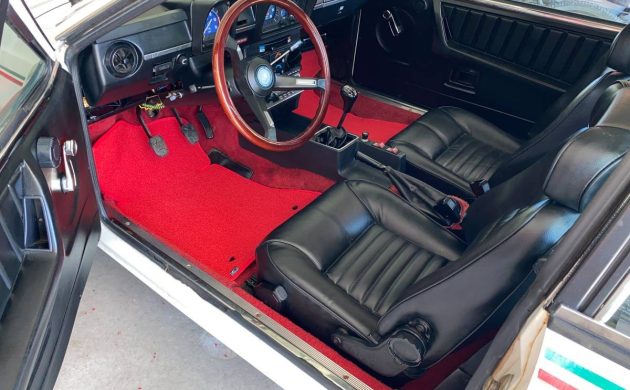 The Alfa got striking red carpeting, which in this instance, remains in excellent condition. You can also make out the red and green pinstriping on the exterior, another signature trait of the Andretti cars. The seats in the Alfetta have always been fantastic, and these buckets are in mint condition. Overall, the Alfa has clearly been well-preserved and looked after, and as one of only 150 cars sold, it’s likely one of the best cars left. The seller notes that in addition to the cosmetic tweaks, the Andretti cars also received numerous mechanical upgrades as well.