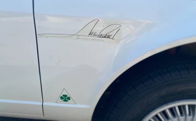 To me, the beauty of this special edition trim is a reminder of the significant role motorsports used to play in this country. The Porsche 924 Martini Edition was a similar exercise in celebrating the brand’s success in winning the World Sportscar Championship. Special decals, red carpeting, and a dash plaque rounded out the significant details, and the Alfetta Mario Andretti edition was a similar exercise in execution. Of course, the Alfa stands apart for wearing a copy of Andretti’s signature on the fender, along with the iconic clover decal. The cosmetics on this Alfa appear to be in excellent condition.