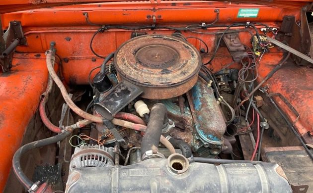 A fun fact is that Dodge hired none other than Don Knotts to promote the Dude in marketing campaigns, with the famed actor referring to it as “another tough truck from Dodge”. It was sort of a strange pairing, considering that Fords were the predominant autos used on the set when The Andy Griffith Show was in its heyday. In any event, the seller says this one has been sitting for a long time, but much of the body still looks reasonably sturdy, with the cowl area showing the most rust on its sides. There’s also a dent in the driver’s quarter and some damage to the rear bumper, plus a few other random bruises here and there. Some sheet metal work will be facing the next owner, but hopefully, many of the panels will be salvageable.