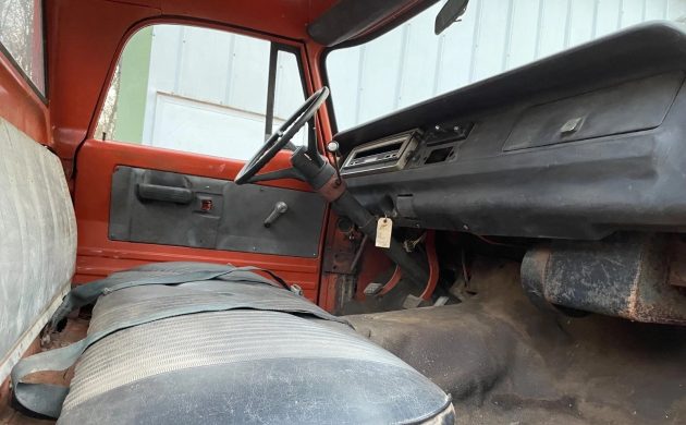 A 318 engine is under the hood, but the seller hasn’t attempted to start it, which is probably a good thing since that radiator looks like it’s been dry for years. There’s no word on whether or not the V8 will still turn, so it might be beneficial to consider installing something larger, unless you’re a stickler for originality. That’s OK too, because the transmission is a three-on-the-tree shifted manual unit, which is always a fun way to change gears, so that component may be worth preserving.