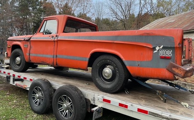 With some of the fine muscle the Dodge boys were producing in 1970, one might think an offering with a name like “Dude” could be packing some serious extra punch under the hood. In reality, the Dude was only an appearance package, but it was a fun one, featuring a black or white C-shape decal along the side with a logo above the light on the quarter panels. These pickups are surprisingly sparse, with an estimated 1,500 to 2,000 produced in 1970 and 1971, the only two years the option was available on the D100 and D200 pickups. The ’70 model here on eBay is a project, but it appears fairly solid overall and probably well worth the effort needed to get it going again. This truck is located in Custer, Wisconsin, with the opening bid of $2,000 yet to be placed.