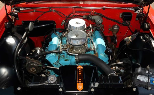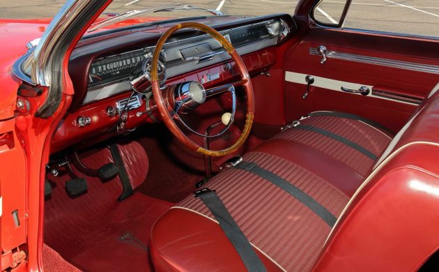 Claimed original dual Carter carburetors top the 405 HP 421 cid (6.9L) V8, and manual brakes and steering keep things simple on a car that probably covered most of its reported 21,616 miles 1320 feet at a time. While a gentleman’s agreement (and potential insurance nightmares) typically capped advertised horsepower numbers in the low 400s, Hemmings reported that Motor Trend calculated their ’62 Super Duty test car made something like 465 HP and 505 lb-ft of torque. All that power and factory 4.30 gears in the Saf-T-Track (limited slip) rear end would probably lay rubber in all four gears until you threw on slicks.