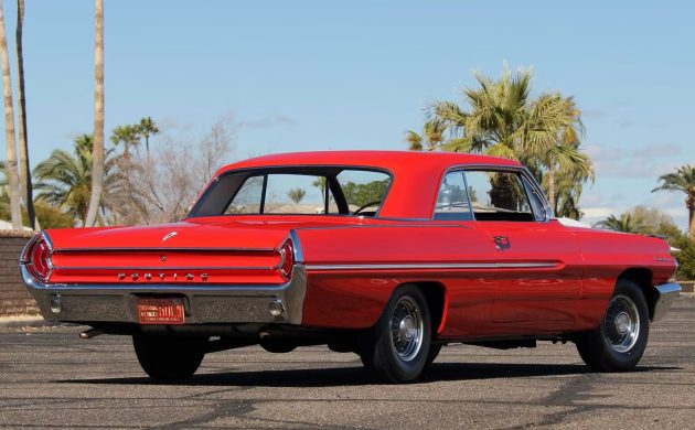 Pontiac performance began well before the vaunted 1964 GTO, and key evidence rests in this 1962 Pontiac Catalina Super Duty. The 1 of 162 special-order unit wears an aluminum hood, front and rear bumpers, and inner and outer fenders, normally all steel. This drag-racer’s secret weapon trimmed quarter-mile times by lightening the burden on the burly solid lifter dual-quad 421 V8. The shiny red runner comes to market on March 21st, 2026 at Mecum Glendale. No market value estimate accompanies the listing, but Hagerty suggests $65,000 to over $100,000. Thanks to Mitchell G. for spotting this rare factory special.