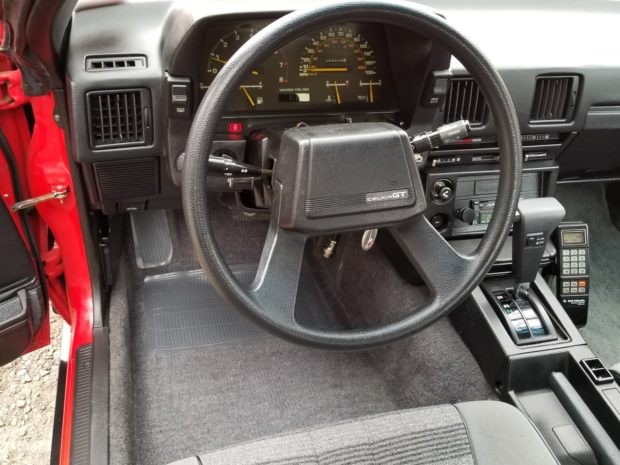 This example is equipped with an automatic transmission, which wouldn’t be the first choice of enthusiasts. These rear-wheel drive Celicas combined decent driving dynamics with the can’t-kill-it dependability of the utilitarian 22 R-E motor. Not exactly exotic, but the looks and handling helped make up for the reliable-but-boring motor. I dig the period car phone in this one, along with the minty interior.