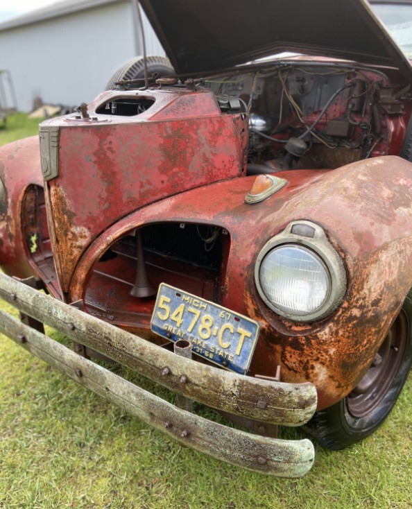 I bought a 56 Power Hawk from a guy in Mishawaka, In. and he had just finished a 39 Stude PU, was red W/black fenders. Beautiful truck, he/they did a great job,, lots of $$$$ for it. Yup metal was heavy like my 67 Divco, fenders were like WWII conbat helmits. A friend had a bodyshop and when he got one in would put his old Dad in front of it, let him beat it out, was his age. Yup, spare tire was in the way but in 1939 didn’t worry about it
