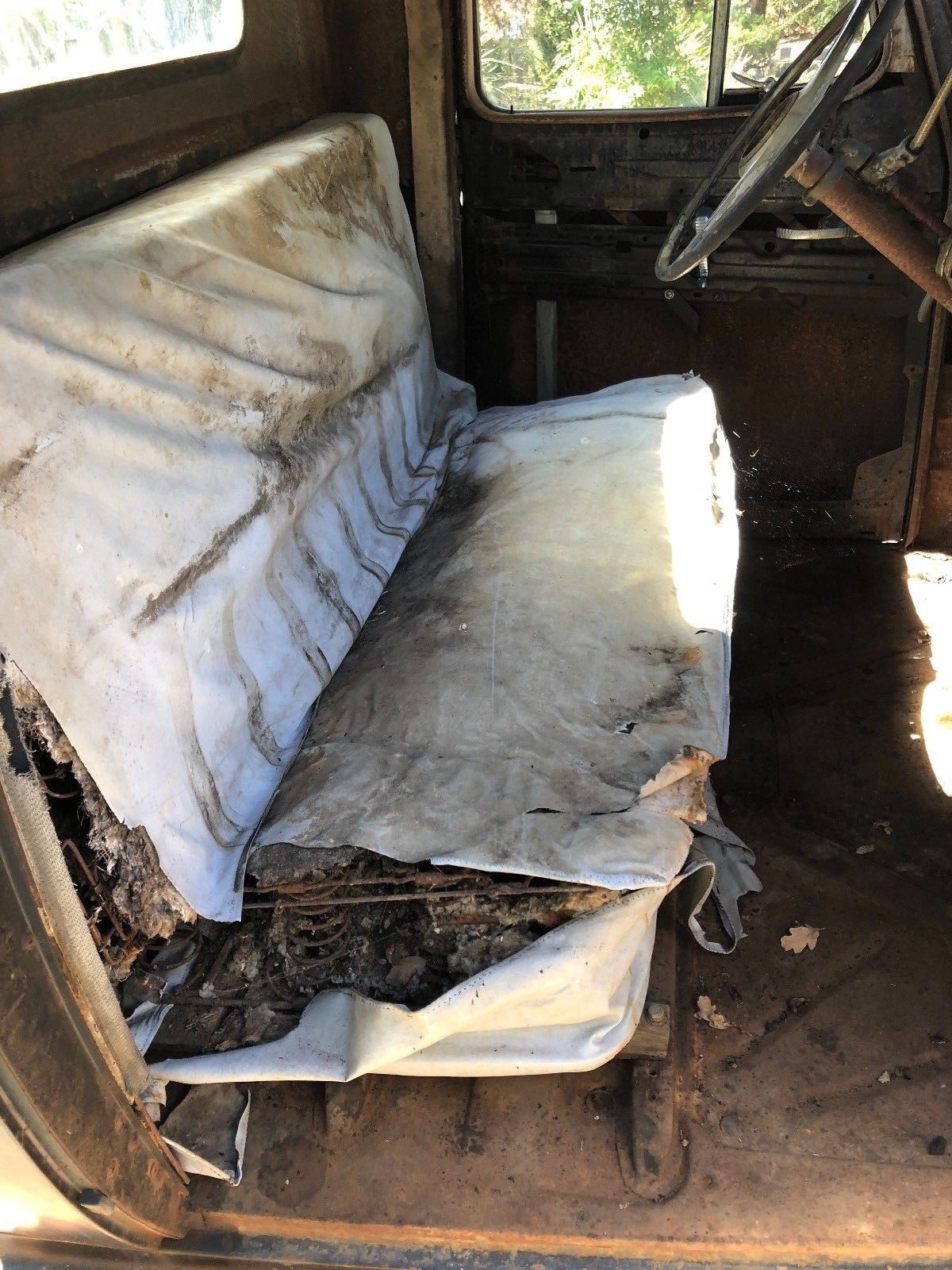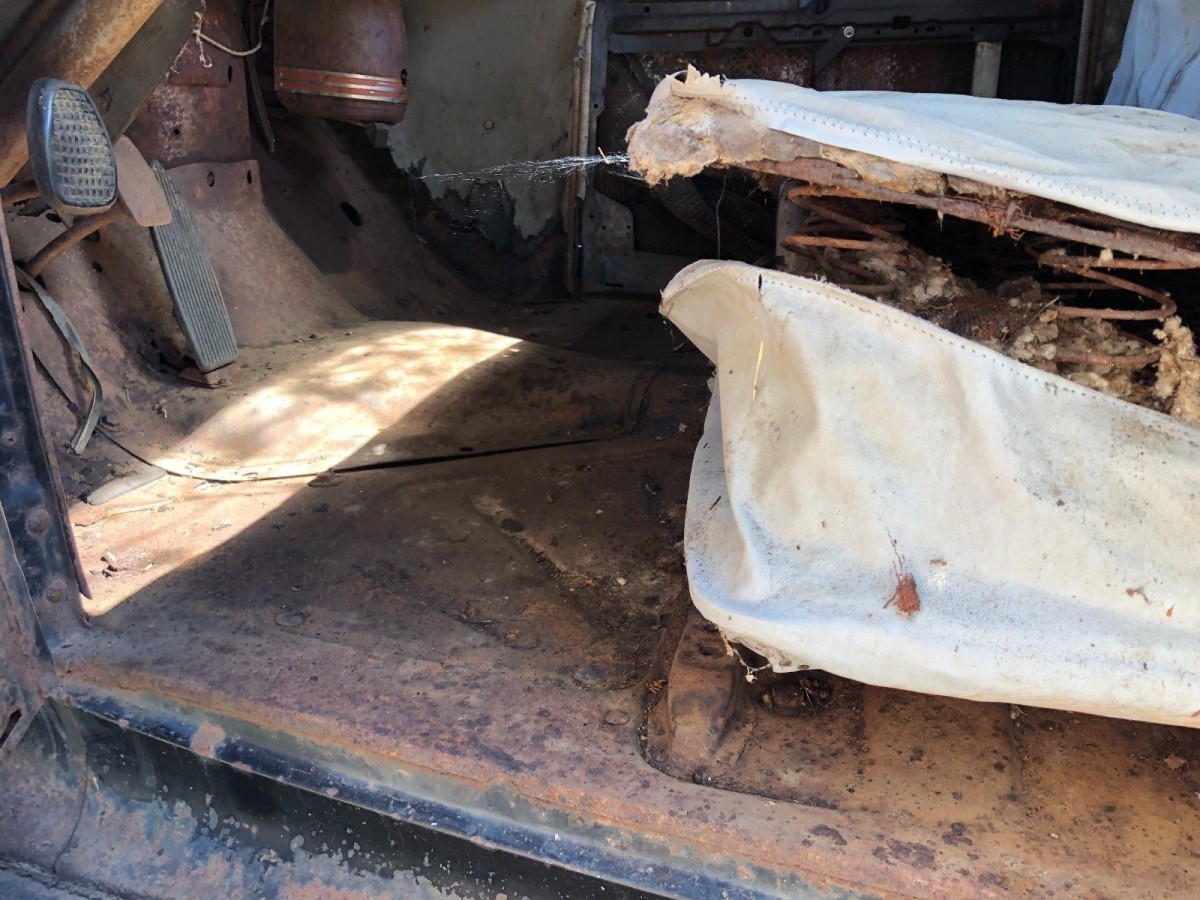 As you can see, the floors look just as solid as the seller claims. The seat will require complete restoration, but it’s nothing that a competent upholsterer couldn’t fix. One thing that you can see visible in this shot is the original gas burner heater.