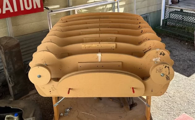 The seller clearly started down a path of restoring this car the right way, going so far as to assemble a station buck to hammer out an aluminum hood to replicate the one that has clearly gone missing; for a time, he had access to a spare, no doubt loaned to him by a fellow enthusiast, to base the buck design on, but he apparently got no further than that (the buck will go with the car.) In addition to the hood, the Jensen is also missing both doors and the rockers, along with the engine and transmission. The seller notes there is also extensive rust in the frame, so replicating the hood is the least of your worries.