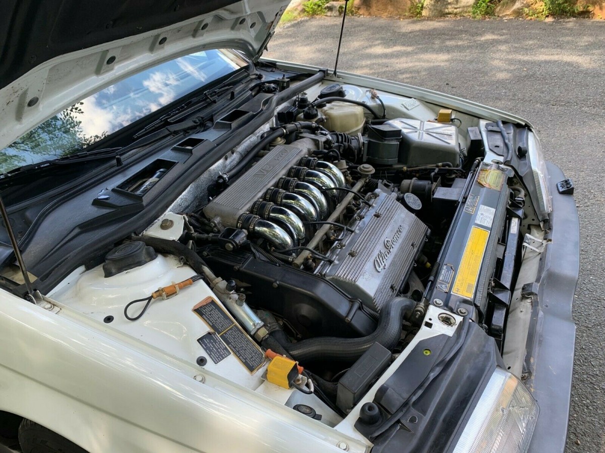 The interior is gorgeous, and Alfa has a strong history of putting some of the best bucket seats known to man into its cars as standard equipment. The leather in this 164’s interior shows only modest signs of wear along the driver’s thigh support, and the carpets and floormats appear to be quite clean. The dash shows no cracks and there don’t appear to be any modifications, with the original steering wheel and radio remaining attached. The seller notes that while the air conditioning components are still with the car, it does not blow cold for reasons not yet diagnosed. The listing claims all major electrical components work and that the sunroof works and does not leak.