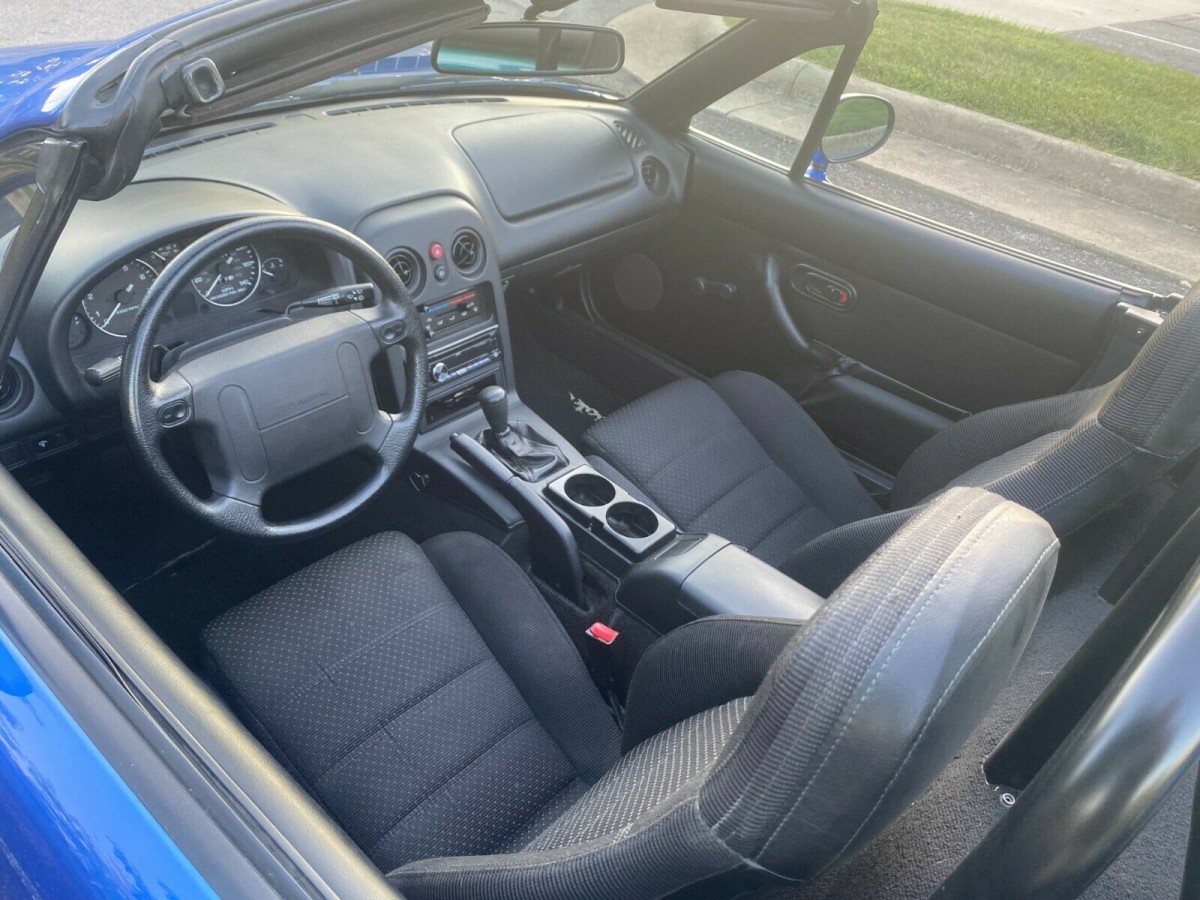 In years past, possessing a small two-seat roadster meant that the owner frequently spent as much time tinkering under the hood as they did behind the wheel. Many of these classics would be considered to be “high maintenance” purchases. Mazda made it a stated aim to ensure that this would not be the case with the MX-5 and assembled a bulletproof collection of mechanical components. This car rolled off the line armed with the 1,840cc DOHC four-cylinder engine that produces 128hp. Those ponies find their way to the road via the rear wheels and a five-speed manual transmission. In standard form, that should make the Miata capable of producing a 16.3-second ¼-mile ET. I used the term “standard form” for a specific reason. The original owner ordered this little Mazda with the R Package, and while it didn’t bring any additional power to the table, it added some worthwhile mechanical upgrades for the buyer’s $1,500 additional outlay over the sticker price. As well as alloy wheels to improve brake cooling, the suspension was treated to Bilstein shocks, stiffer suspension bushings, better springs, stiffer sway bars, and a Torsen limited-slip rear end. A subtle lip front spoiler and a decklid-mounted rear spoiler added some slight aerodynamic improvements, while owners had to learn to live without luxuries like power steering and ABS. These changes were designed to prune pounds away from an already featherweight car and improve handling and stopping abilities. The weight loss program allowed the Miata to shed 40 lbs, and it offered drivers a measurable improvement in grip when the roads became twisting. The owner doesn’t supply any information on this car’s mechanical health, but since it has a genuine 33,000 miles on the clock, it is more than likely that the notoriously long-lived MX-5 should run and drive well.