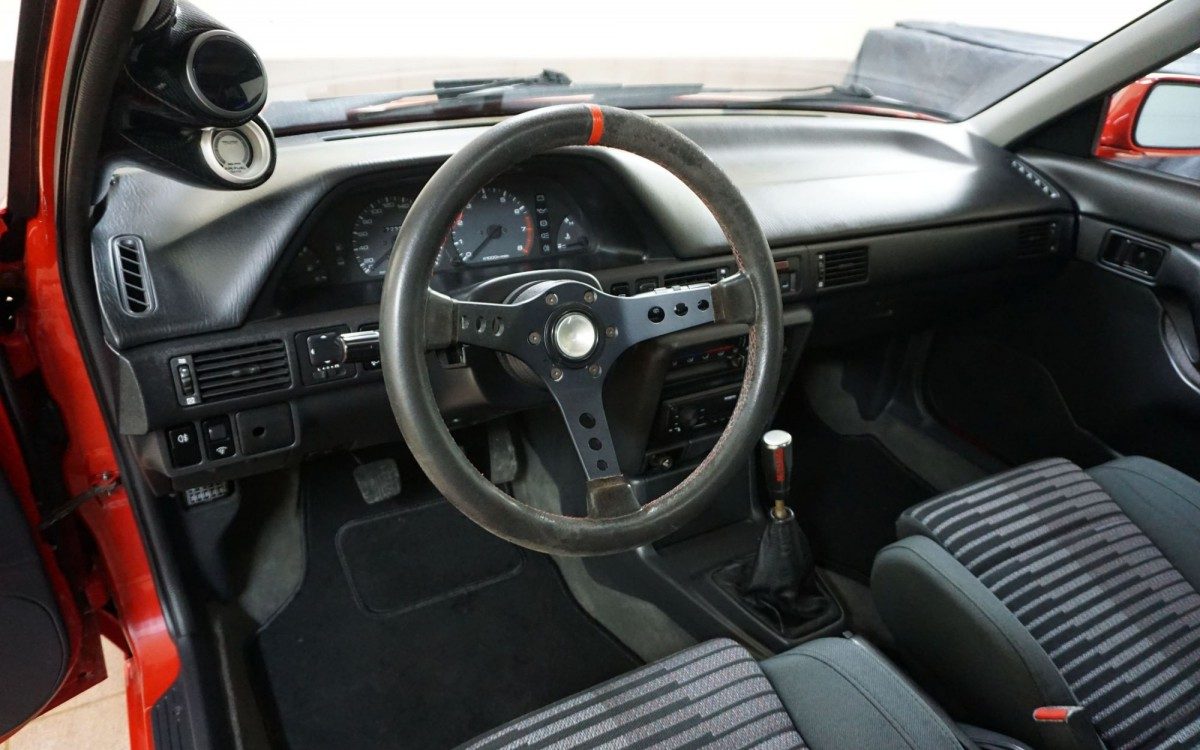 Mazda had prepared to race the following year, just in case, with the homologation 323 GTR 4WD. This 323 is one of 2,500 produced. It has been kept in mostly original condition with the only exception being a repaired engine. When released, the 323 GTR’s 1.8-liter, turbo 4-cylinder engine was reported to produce 182 HP and a limited top speed of 112 MPH. Other updated features over the standard 323 include new front and rear bumpers, wheel flares, and stiffer suspension. Interior features include leather/suede seats and an interesting “speed” function.