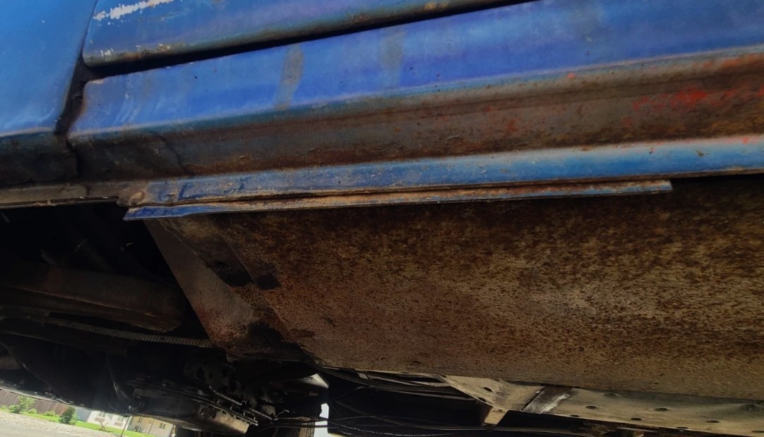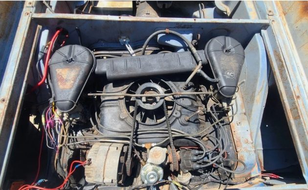 This is Chevy’s 2.4 liter air-cooled flat six, good for about 98 hp; it’s paired with an automatic transmission. The seller bought this vehicle out of ten-year storage, then proceeded to flush the fuel from the tank and lines, rebuild the carburetor, and give it a new fuel pump, battery, ignition switch, and choke cable. That was enough to get her running and driving, but the engine and transmission leak, so new gaskets are in order. The driving video included in the listing tracks the car as it navigates around the block a few times, but it has a tentative feel – as if it’s not ready for prime time. I’d probably want to check those brakes before heading off into the sunset. A good look at the underside is warranted, too; I see more rust-related damage than I’d want.
