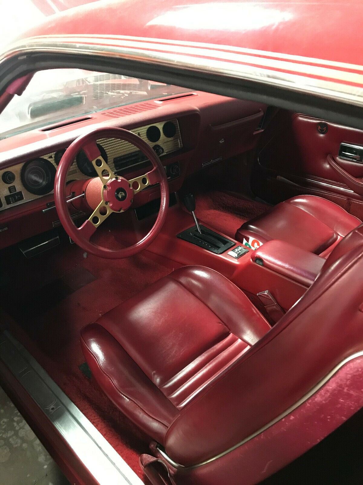 The extent of the Red Bird Package was an exterior and interior trim enhancement package, and as the name suggests, the car could be had in any color, as long as it was Roman Red. The wheels were also finished in the same color, with gold accents and “Red Bird” decals. The paint does look a little bit tired, but I think that it may respond well to a decent polish. The correct wheels are in place, along with the majority of the gold stripes and decals. The decals on the rear pillars look like they may not be original, but the external condition of the car does look promising.