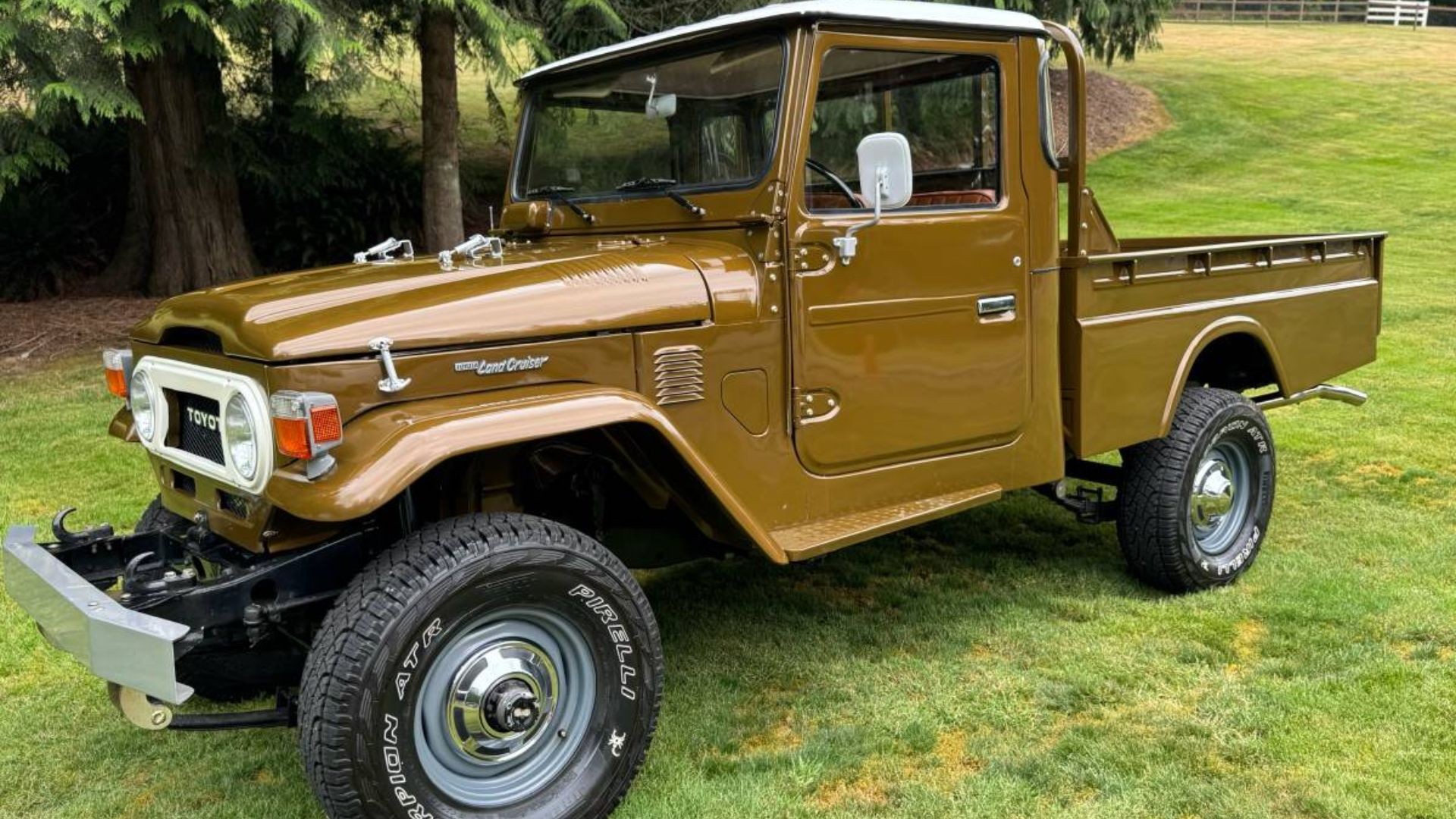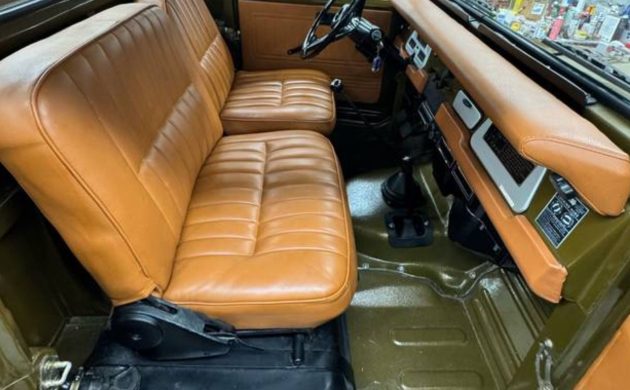 The body and chassis have reportedly been given a full rotisserie restoration, which is a major selling point for buyers wary of hidden rust. The brown paint suits its utilitarian roots, while the orange interior adds a fun contrast that plays up the FJ’s 1970s character. Inside, the cabin appears clean and simple, staying true to Toyota’s original rugged design philosophy.