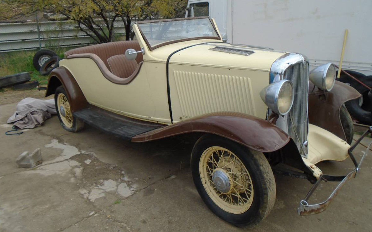This is one of the most interesting vehicles that I have seen or researched at any length in a long time. This 1932 Studebaker Rockne 65, or 1932 Rockne 65, has been customized at some point in its history which may have hurt its value given that it’s such a rare car. It’s listed here on craigslist and it can be found in beautiful, dry, warm Tucson, Arizona where I should be right now. The seller is asking $5,900. There were Standard and Deluxe versions and the Deluxe would have had dual spare tires mounted on the front fenders, so this would have to be a Standard, unless when it was customized that feature was removed. Let’s dig into it a bit.