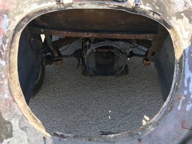 As for a lack of a VIN, unless the stamped chassis/VIN has been ground off, the original VW VIN should still be on the pan, near the location where the shifting rods hook up to the gearbox. That said, this pan is shot, whoever tackles the restoration will need to source a structurally good VW cabriolet pan anyway. It is also possible to add the cabriolet structural reinforcement pieces if a cabriolet pan is not available.