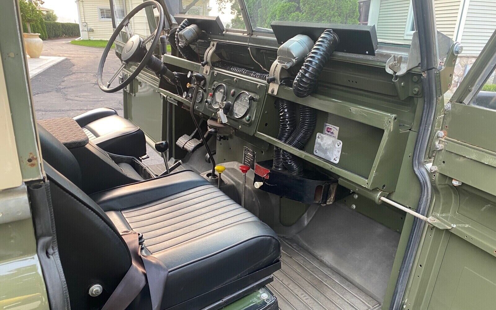 The bits covering the windscreens are for de-misting. Driving in the rain with the windows rolled up leads to the inside windows sweating like mad and a pain to drive. Use to put my daily rubbish in the tire on the front of my Landie to trundle it up to the public rubbish collection bins; very handy. These are hands-on, four turns lock to lock, zero power steering, bicep and callus building cars. Driving one is better than going to the gym. Seventy five MPH is about their limit and the steering feels like it’s on novocain. Not for the faint hearted.