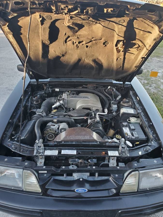 The specific options the seller notes as setting this Mustang apart relate to the gray interior; sport articulating bucket seats; black paint; 5.0L V8; and manual transmission. It doesn’t seem all that exotic when you spell it out like that, but when you consider how many Fox bodies you’ve seen with tan fabric upholstery, it becomes clear most shoppers didn’t choose these options. The engine bay is pleasingly stock, with not even a cold air intake installed to disrupt the stock appearance. The seller lists it as having 83,000 miles on the clock and that the Mustang runs well with no apparent issues.