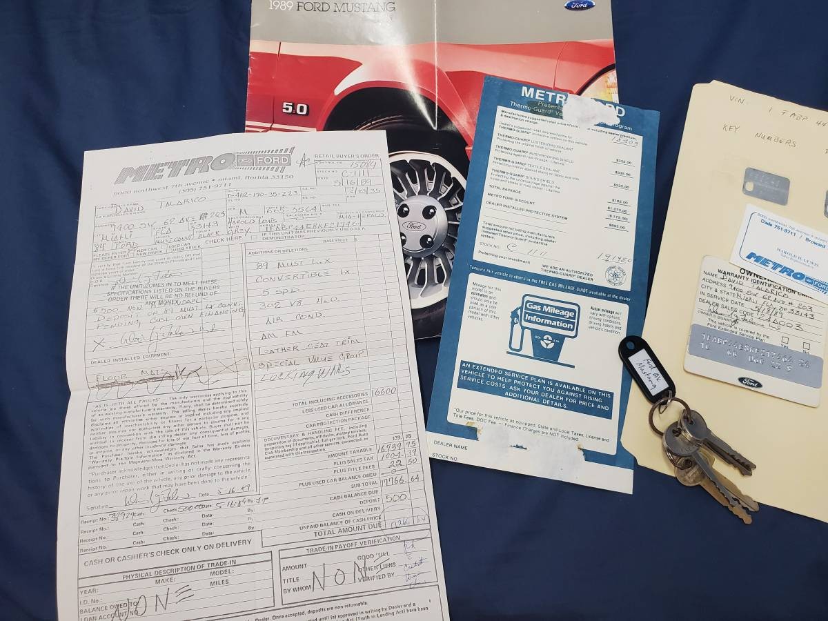 The Mustang comes with plenty of documentation, from the original window sticker to the factory brochure. This photo also shows what looks like the original purchase and sale agreement, along with the keys handed to the first owner when they drove it off the lot. The seller notes the front brakes are fresh and the Mustang comes with new tires, and there’s a vague reference to a “fresh service” in the last 500 miles. The rarity factor isn’t overwhelming, but it may be enough if you’ve been hunting for an LX convertible with the 5.0 and a gray interior – they certainly don’t come up for sale all that often. Thanks to Barn Finds reader Rex M. for the find.