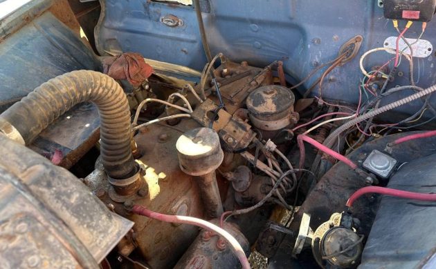 Wayfarer power is a 103 gross HP, 230 CI, inline, flathead six-cylinder “Get-Away” engine. The seller suggests, “Motor runs with gas down the carb” so I guess that sorta qualifies as a runner. Transmission responsibilities are handled by a three-speed Fluid-Drive arrangement.
