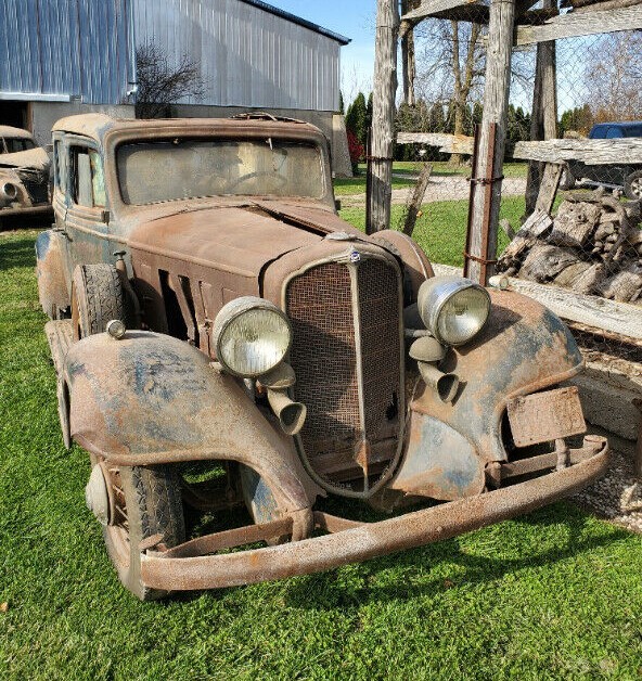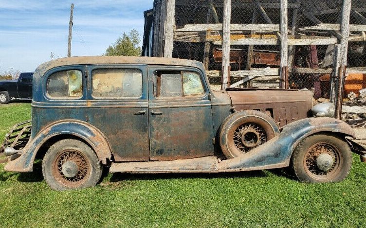 This 1933 4-door sedan has restoration project written all over it. It’s been living in a barn since at least the 1980s and is said to be complete. Which is a good thing, because things like taillights, headlights, horns, glass, spike wheels would not be easy to source and replace today. The motor has been disassembled and is likely a 344 cubic inch straight-eight that would have produced 104 horsepower. The rollback roof and all interior materials are going to need replacing.