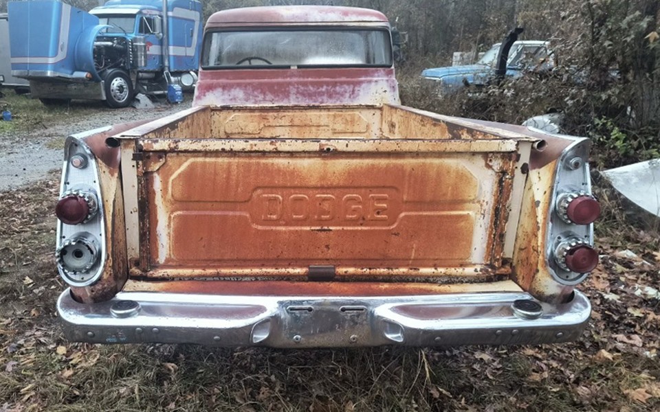 The bed sides are two rear quarter panels from Dodge’s new two-door station wagon for 1957, and I think it’s cool as hell. I mean, heck, sorry. Finding that missing tail light lens may be challenging, you may have luck at a huge show like Hershey or a similar event. I’m surprised at how good and solid this truck looks, at least as far as rust holes go.